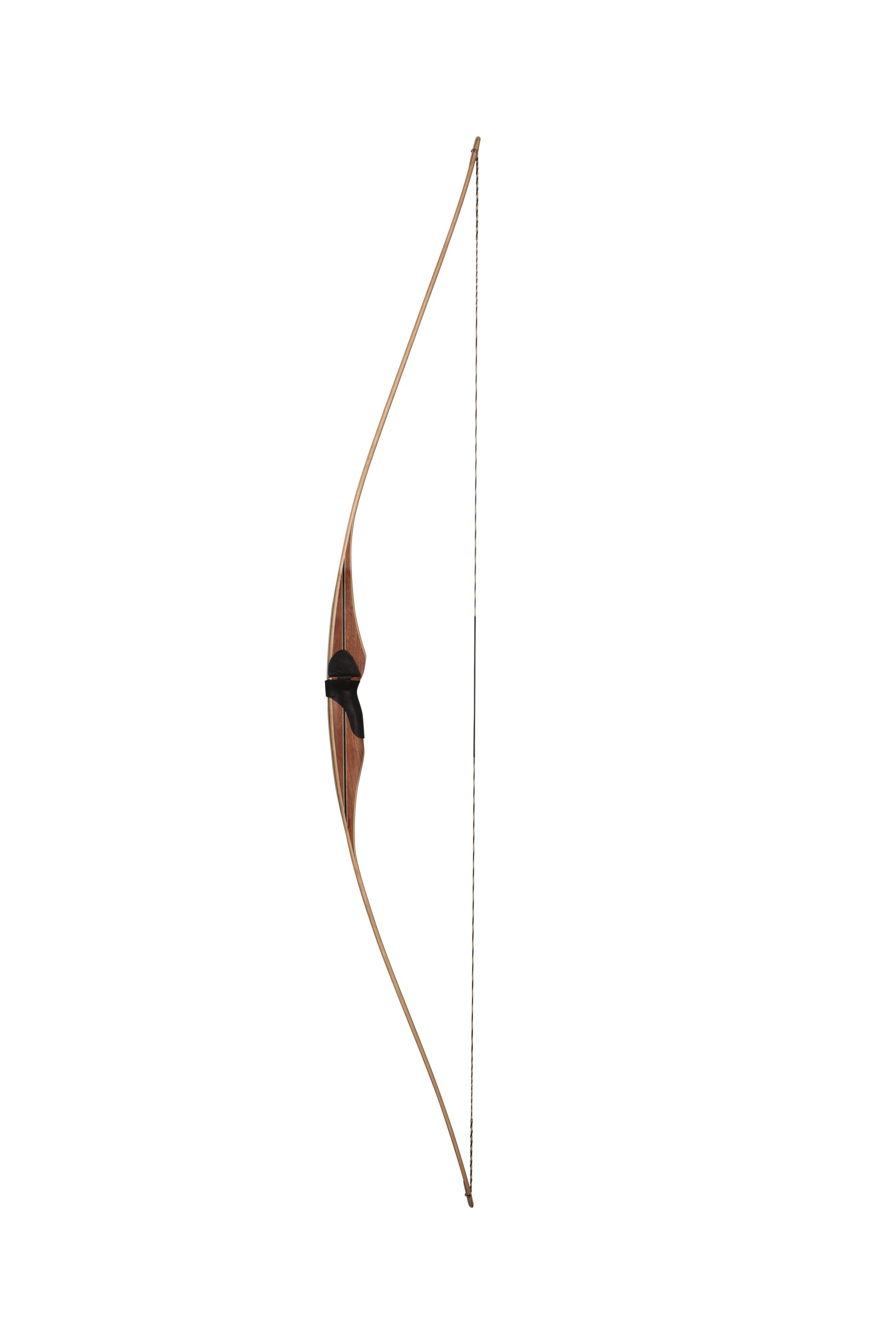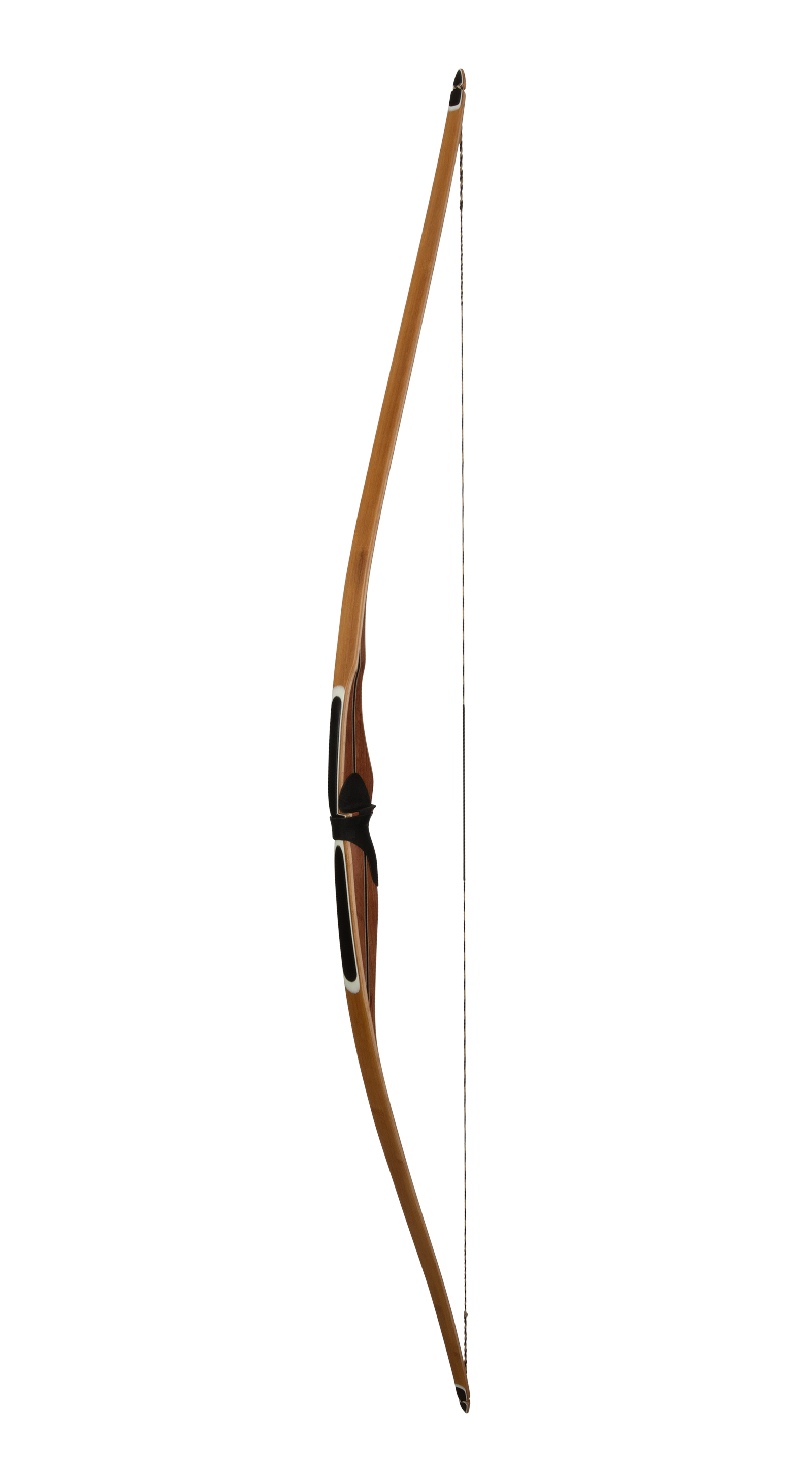 The Au Sable longbow, aptly named after Michigan's famous Au Sable River, was introduced in 2011. It's been well received by longbow enthusiasts due to its reflex/deflex design, larger sight window, full-radiused grip, and crowned, and cut-on center arrow shelf. Maple and Bamboo-core limbs make this bow smooth, quiet, and fast. The Au Sable riser is crafted from exotic Bubinga and carries an inlaid matching accent stripe. The longbow limbs consist of three layers: a maple core at the center, overlaid with two layers of bamboo and backed with high-strength fiberglass, resulting in a smooth-shooting and powerful bow. The handcrafted tips are layered with black and white fiberglass for a beautiful and timeless finish.